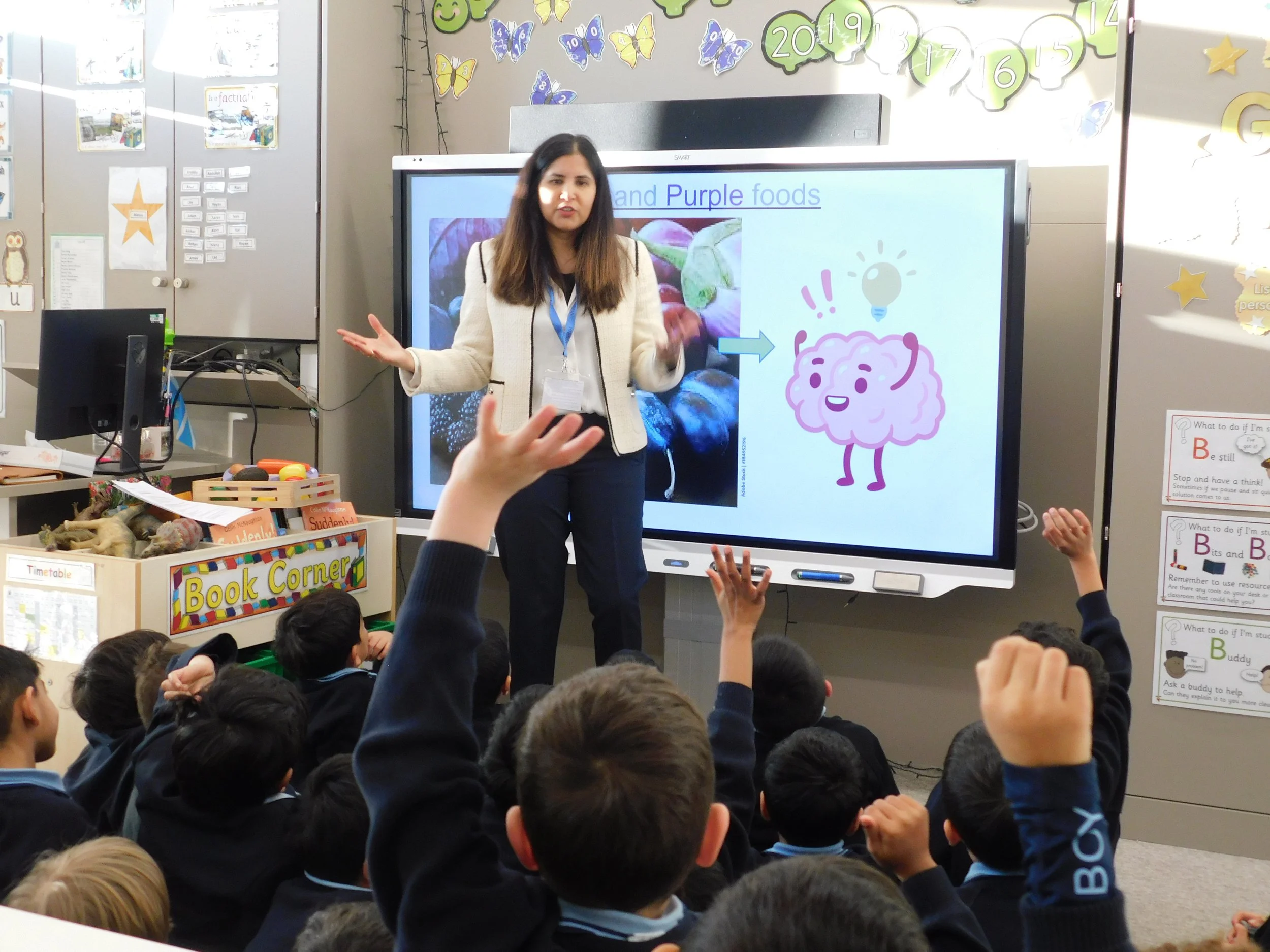 The children learnt about the healthy food plate and about how food groups have different roles to make us feel good! She told us how foods get their colours from the vitamins and minerals they contain. The children loved tasting the different colours of the rainbow - we learnt so much, thank you Mrs. Acharya!’